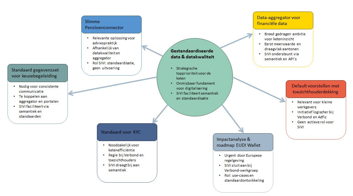 Door projecten in samenhang te benaderen, voorkomen we versnippering. Gestandaardiseerde en betrouwbare data vormen de basis voor initiatieven als de pensioenconnector, de data-aggregator en tooling voor keuzebegeleiding. De EU ID Wallet krijgt daarbij naar verwachting een steeds belangrijkere rol.