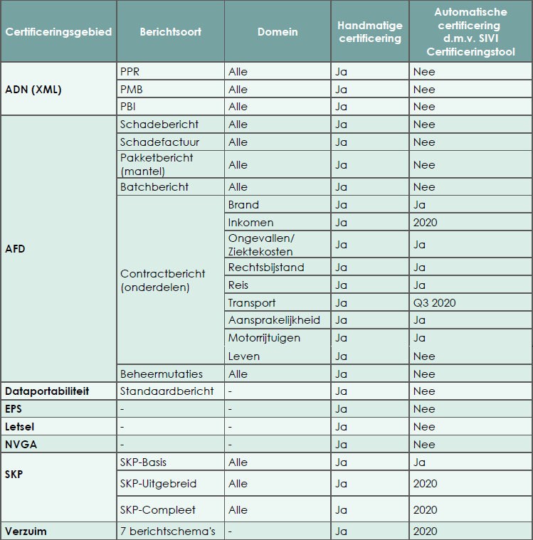 Vanaf september 2019 certificeert SIVI alle AFD-berichtschema’s. Dit kan via de AFD Certificeringstool op de SIVI website. De uitrol van volledig geautomatiseerde certificering gaat in 2019-2020 stapsgewijs plaatsvinden.